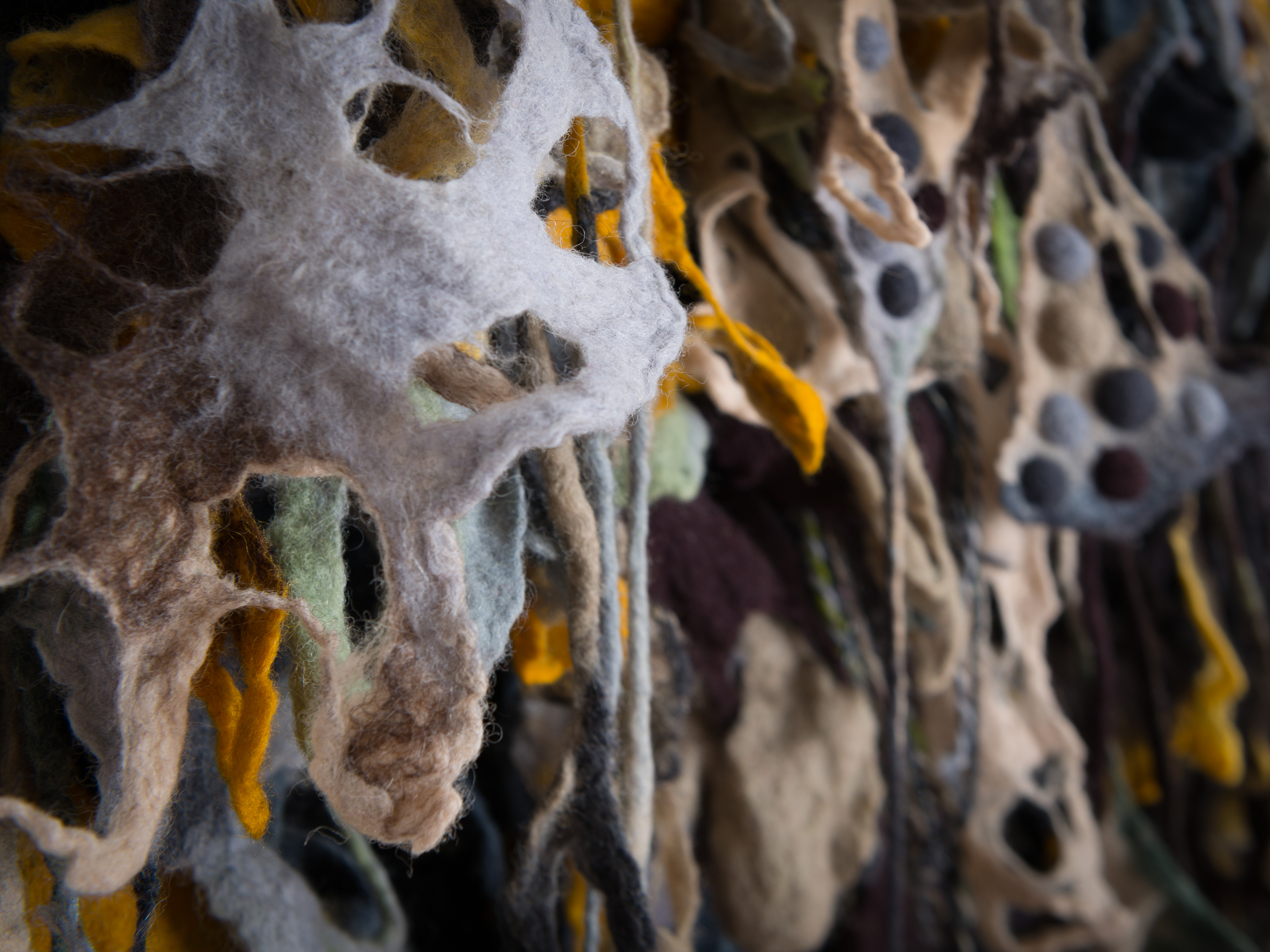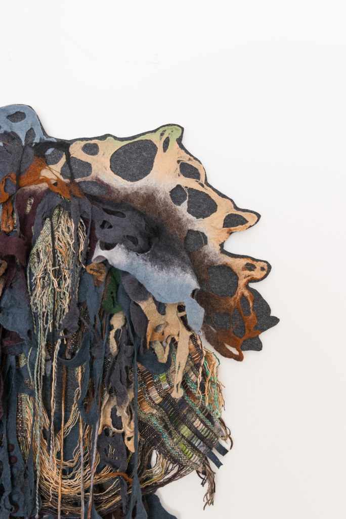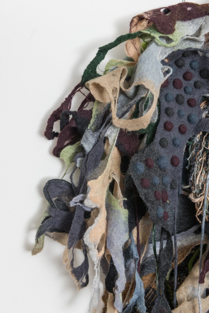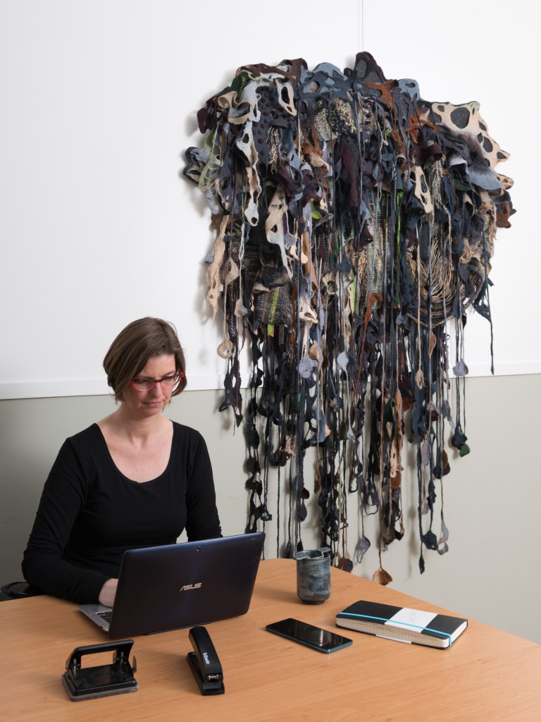 Kortom: Caroline maakt heel bijzondere textielkunst, die veel meer aandacht verdient. Dat zal vast lukken, want het past uitstekend in onze huidige tijd met toenemende aandacht voor duurzame materialen, organische vormen en de mogelijkheid om dingen aan te passen.