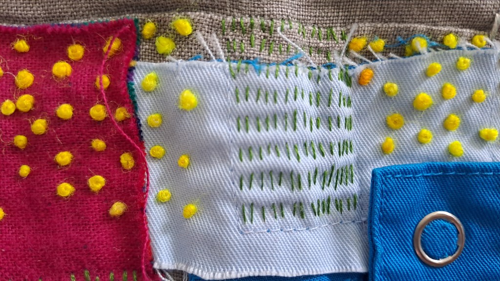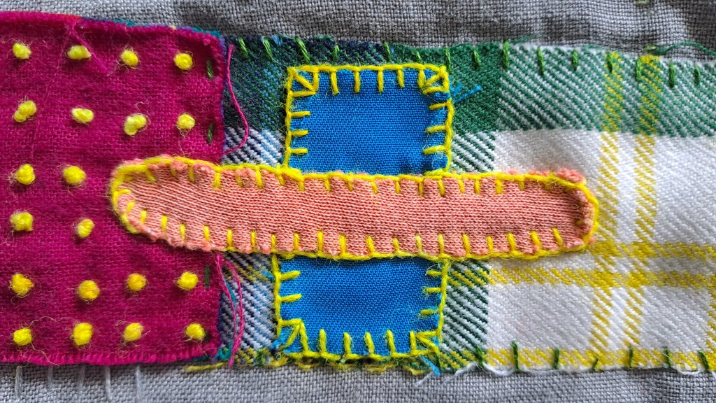 – Borduur de twee stoffen aan elkaar. Borduursteken zie je hieronder.